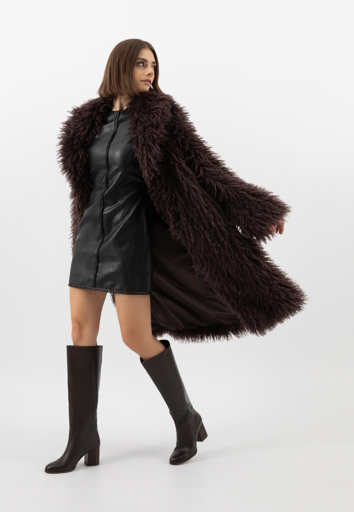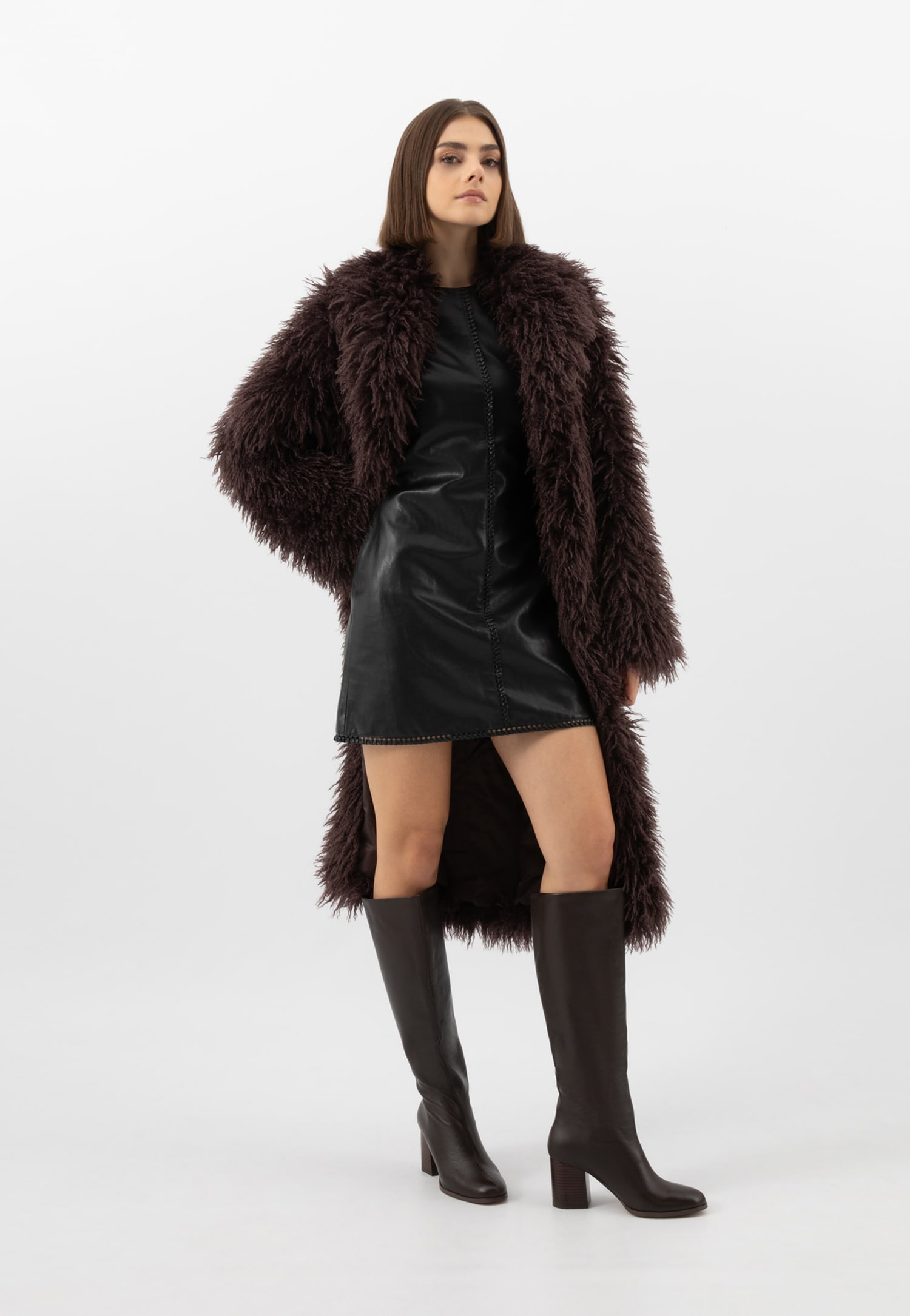 Čokoládové kožené dámské kozačky na sloupku