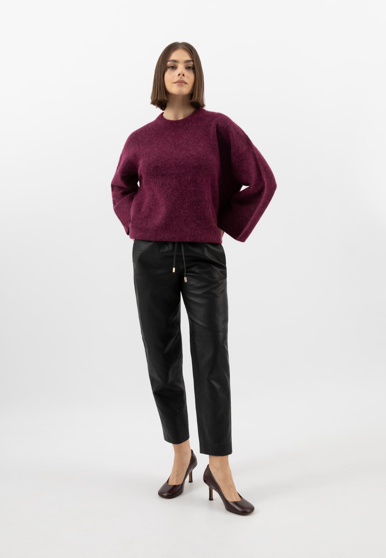 Bordové kožené dámské lodičky na vysokém podpatku
